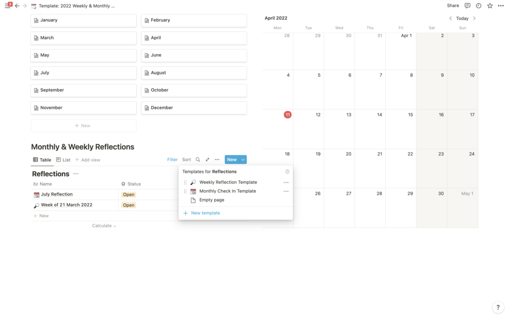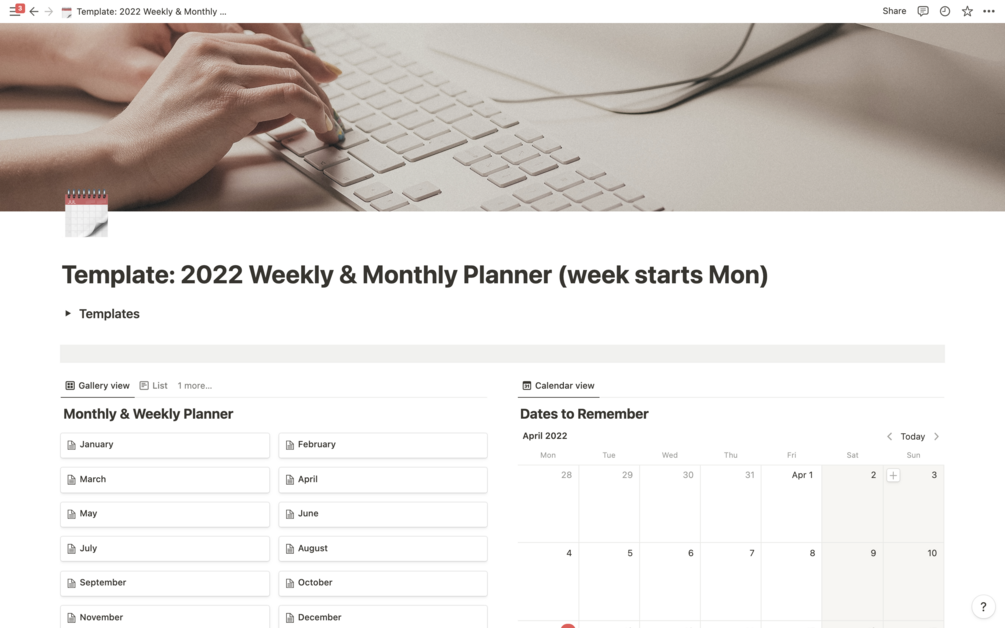 2022 Yearly Planner | Notion Template | Digital Planner - Weekly & Monthly Views