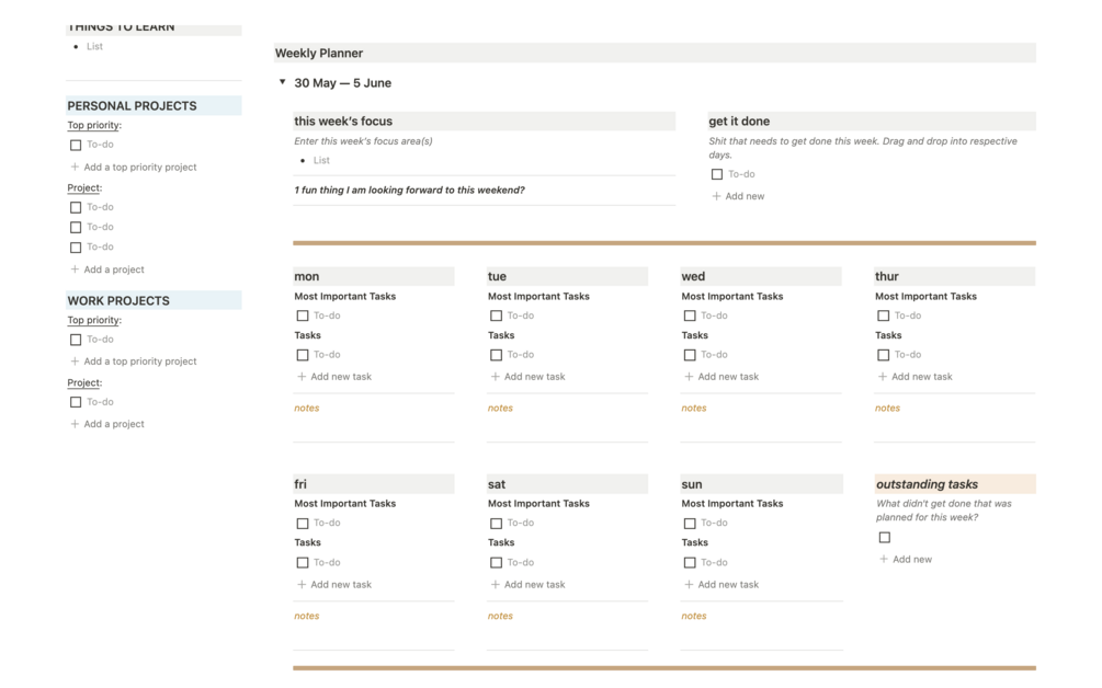 Focus areas for the week & month