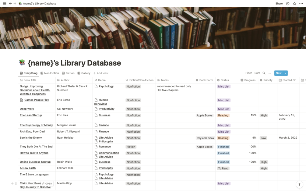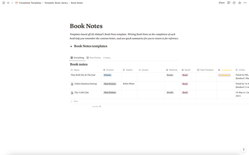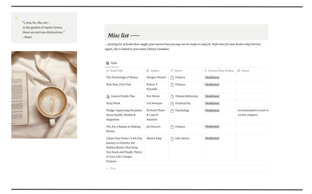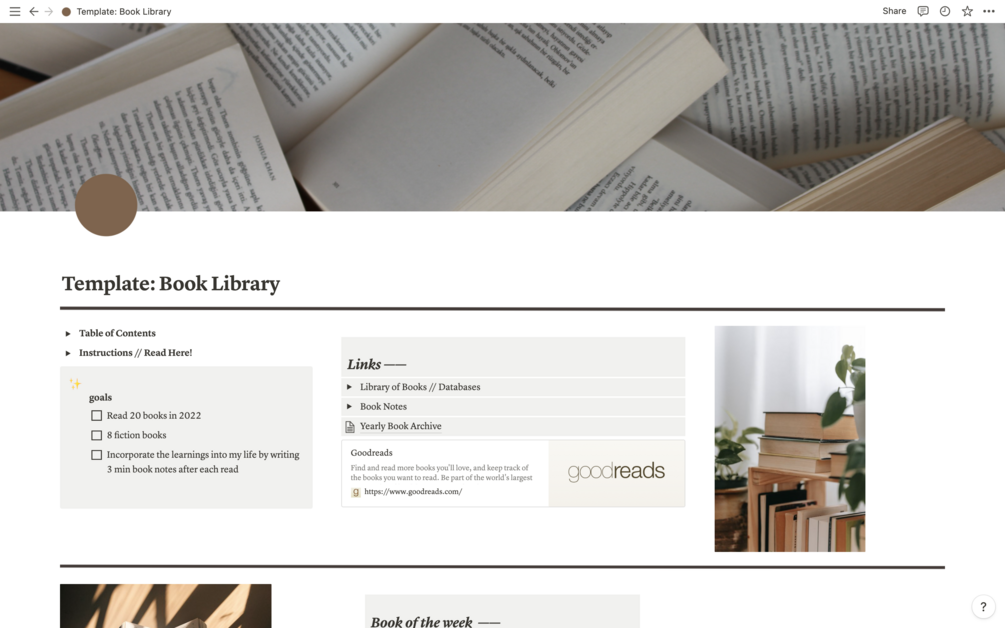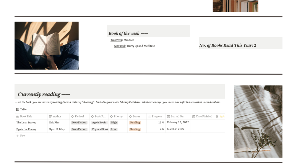 You'll get a notion template that helps you track the books you want to read, have read, and are reading.