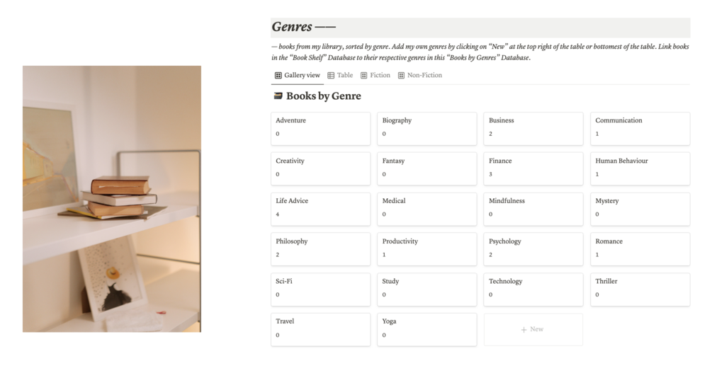 + Books in the Main Library get automatically reflected by genre under "Books By Genre"
